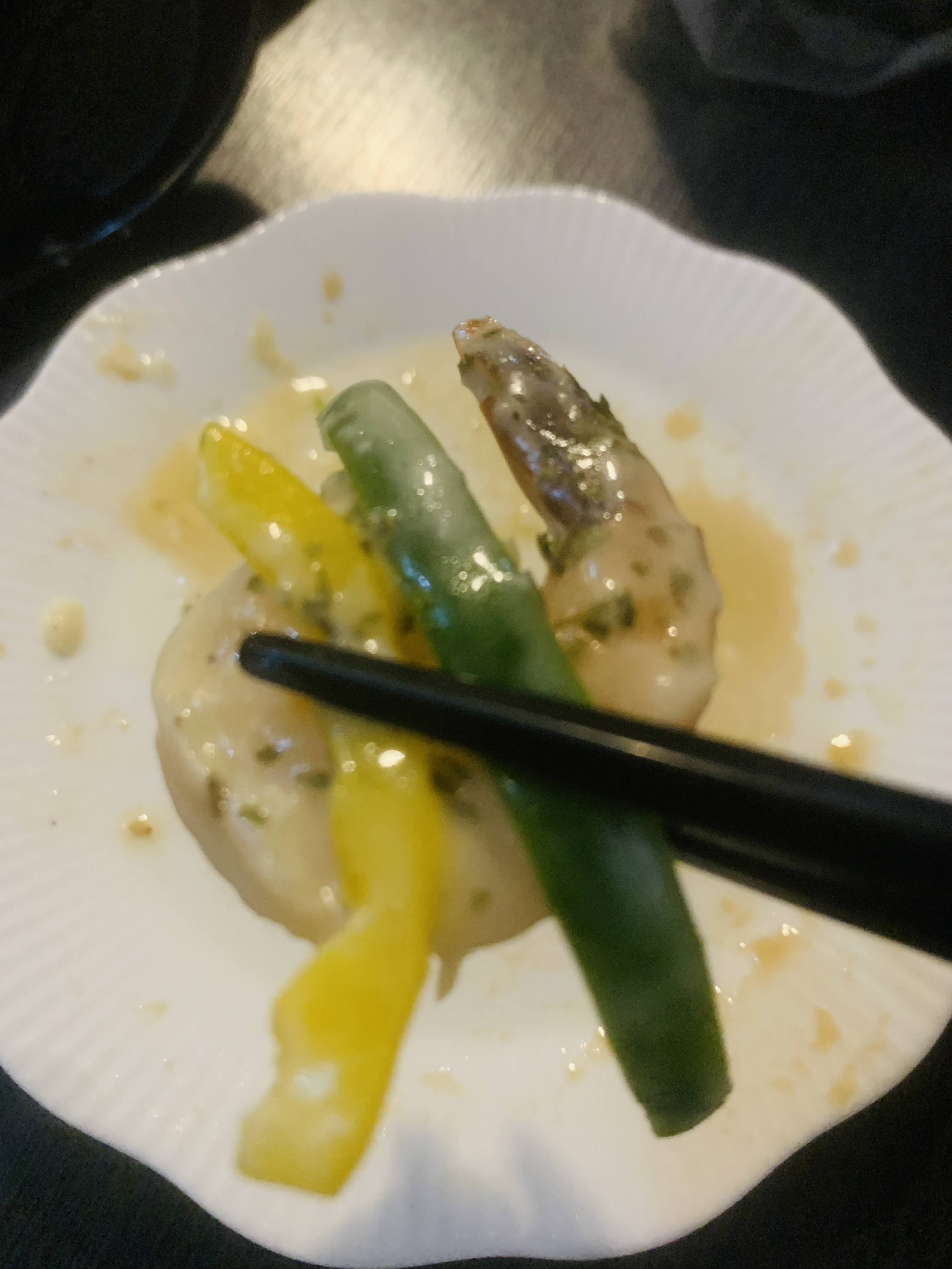 우와...이게 뭔가? 제 입맛이 맞다면 크림소스에 잘 볶아져 나온 새우와 야채의 춤판인 음식이었습니다. 보통 새우만 골라 먹는데 이 음식은 그러지 못했습니다. 야채와 곁들여 같이 먹는 새우맛이, 감칠맛이 쩔었습니다.ㅠㅜ 글을 쓰는 지금 이 순간에도 또 먹고 싶네요. ㅠㅜ