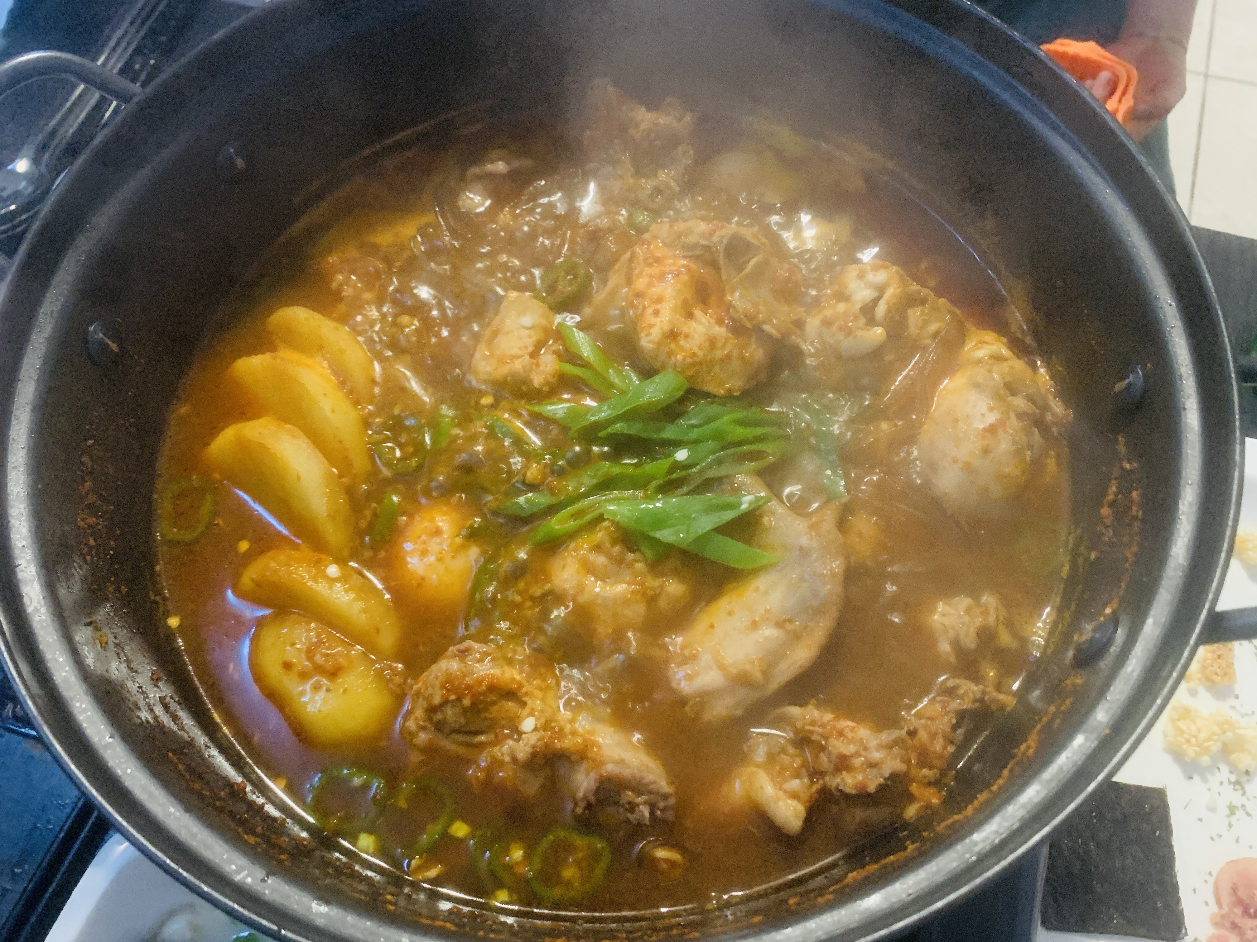 감자의 포슬함과 닭고기의 쫀득함, 국물의 달큼함과 적당한 칼칼함까지, 화룡점정인 적당한 굵기의 당면까지! 이것은 안주인가 반찬인가? 정신을 차릴 수가 없었습니다. 우리는 후다닥 다 먹었습니다. 신이시여 제 위가 이렇게 거대했단 말입니까? 절로 신을 찾게 되더군요.