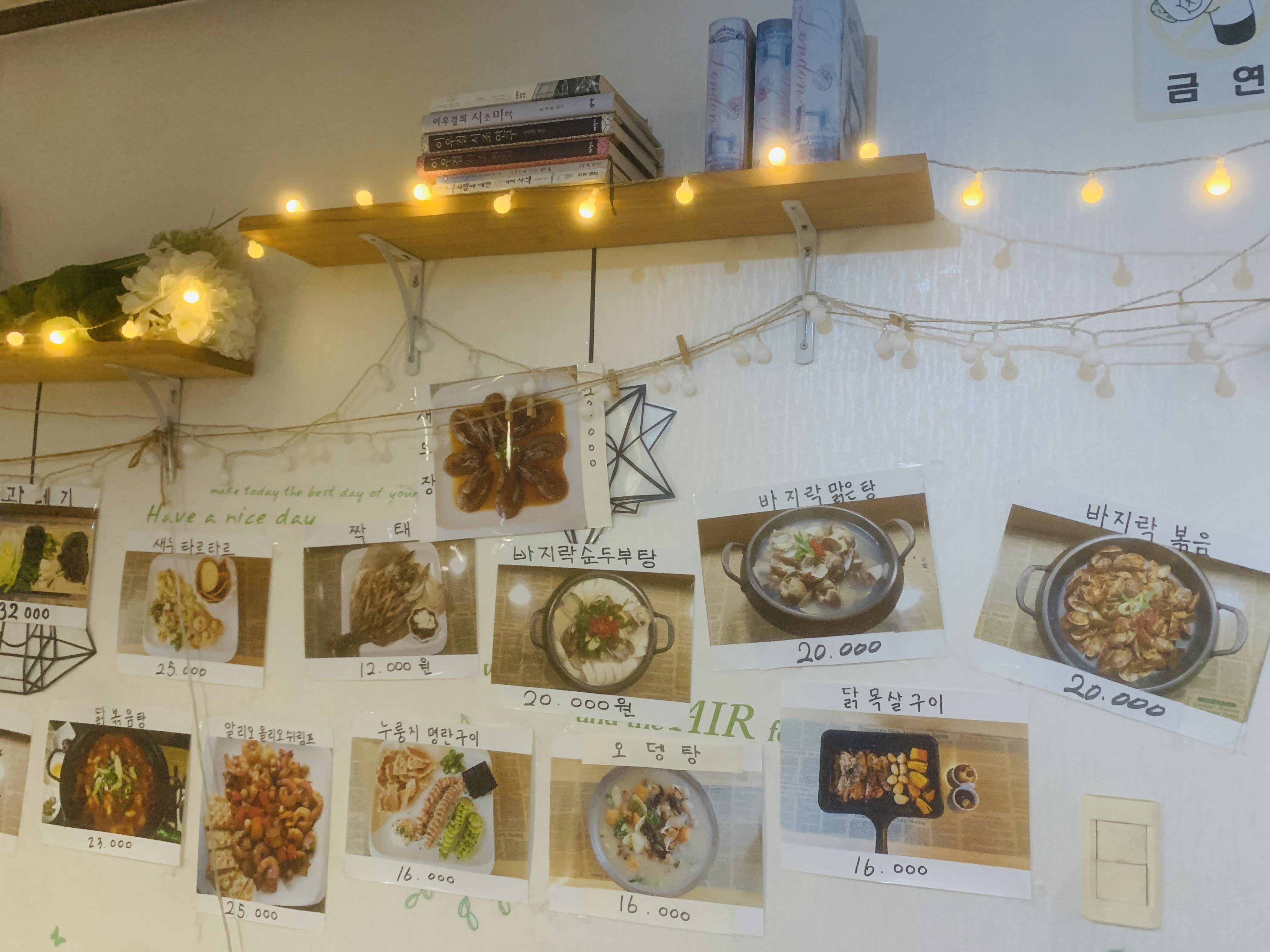 메뉴판이 벽에 붙어 있습니다. 처음에 큰 기대는 하지 않았습니다. 언젠가 한번씩은 먹어본 음식들이었습니다.