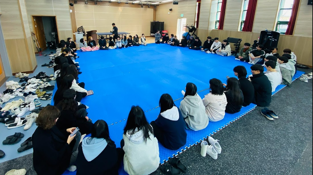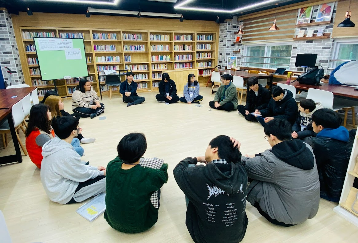 중간 중간 전 선생님들과 전 학생들이 다 같이 모이는 '싹다모임'을 했습니다. 공통으로 전달사항, 의논할 사항이 있으면 모입니다. 동등한 입장에서 자유롭게 이야기하며 합리적인 결론을 도출합니다.