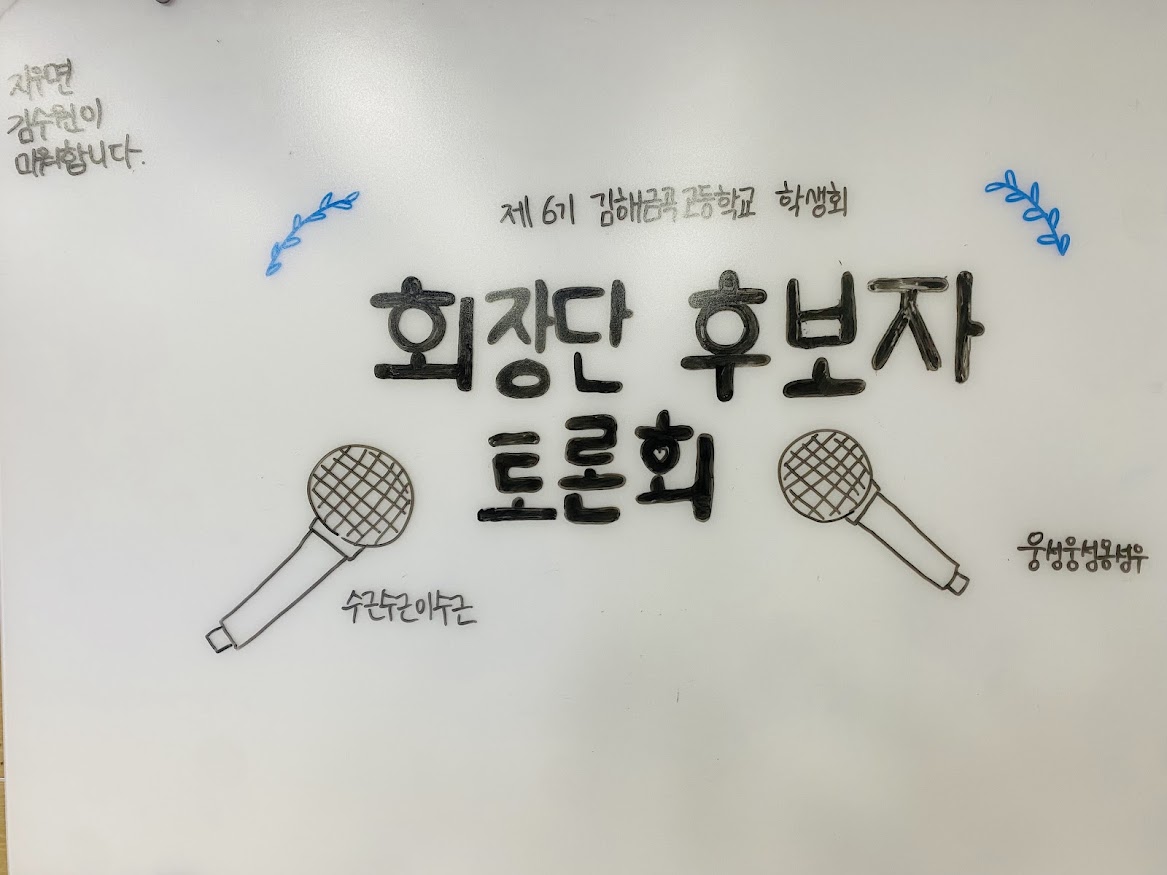 후보들 토론회를 할 때 후보들은 상대를 비난, 비방하지 않았습니다. 정책을 묻고 대안을 질의하며 소중한 정보를 공유했습니다. 개인적으로 어른들 선거보다 훨씬 깨끗하고 공정했습니다. 앞으로 있을 지방선거, 교육감 선거를 준비하시는 분들께 권합니다. 김해금곡고 학생회 선거를 와서 보십시오. 자라는 학생들이 어떤 자세와 어떤 마음으로 선거를 준비하고 행하는지, 유권자들은 어떤 시각으로 후보들을 관찰하고 후보들 말을 경청하는지 보십시오.