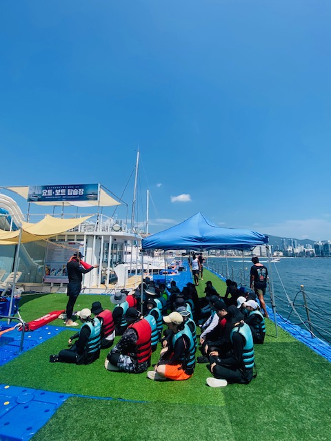 드디어 다음 날!!! 우리는 패들보트를 타고 광안대교까지 다녀왔습니다. 혹시 패들보트 타 보신 분 계실까요? 김해금고곡 학생들은 3학년 제외하고 거의 대부분 처음 접했습니다. 망망대해에 혼자 패들보트를 타고 광안대교까지 다녀오는 것은 결코 쉬운 일이 아닙니다. 하지만 우리는 해내었습니다.