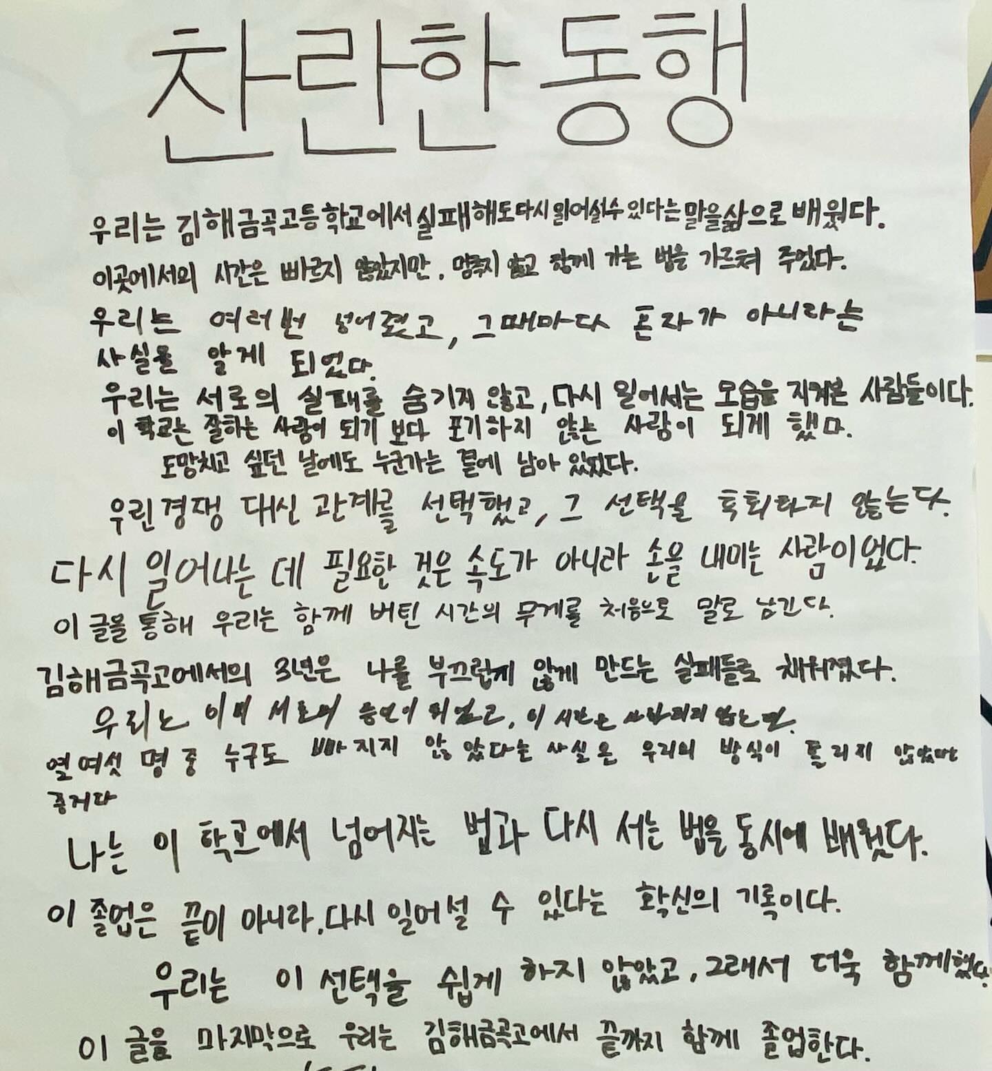 이 글을 마지막으로 우리는 김해금곡고에서 끝까지 함께 졸업한다.